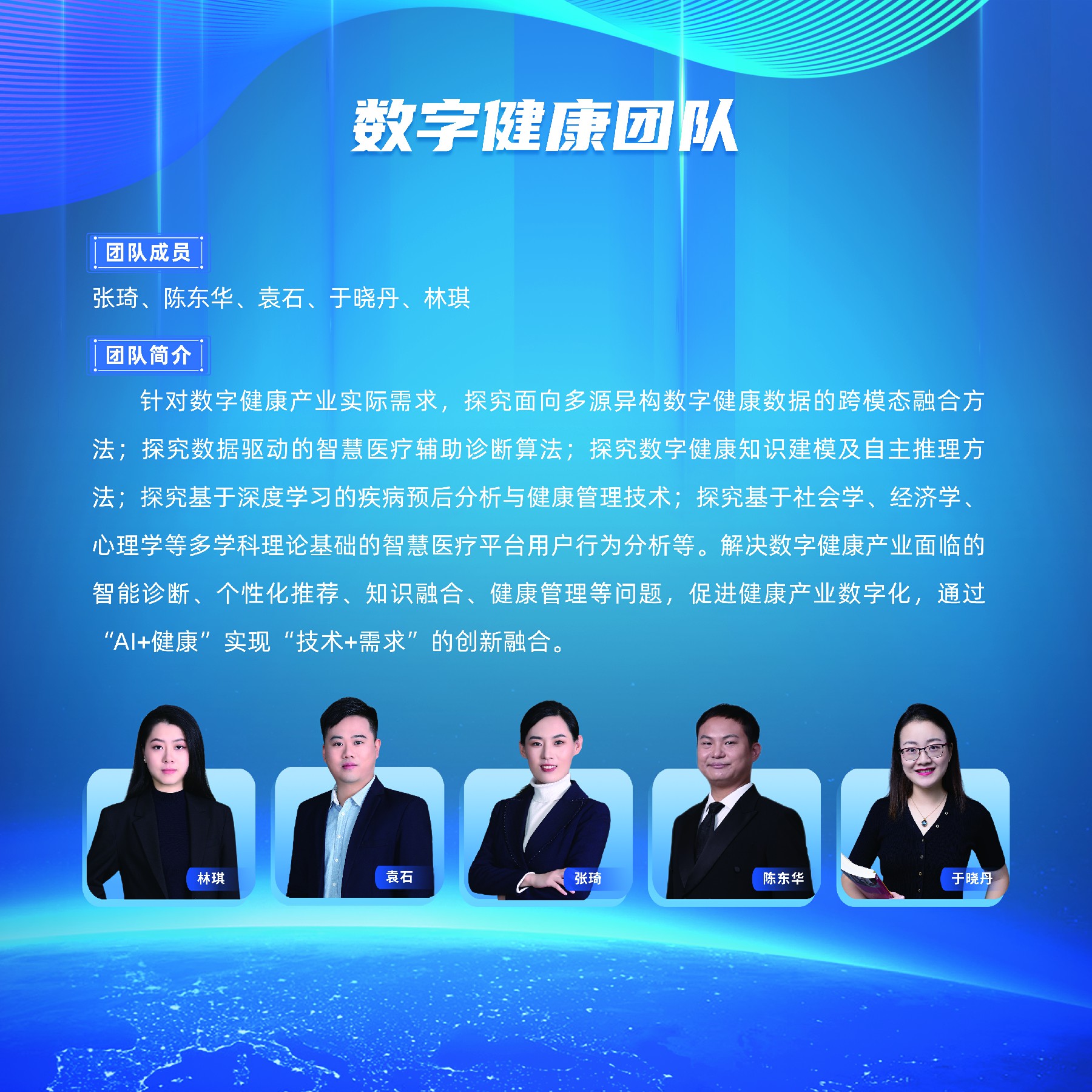 针对数字健康产业实际需求,探究面向多源异构数字健康数据的跨模态融合方法;探究数据驱动的智慧医疗辅助诊断算法;探究数字健康知识建模及自主推理方法;探究基于深度学习的疾病预后分析与健康管理技术;探究基于社会学、经济学、心理学等多学科理论基础的智慧医疗平台用户行为分析等。解决数字健康产业面临的智能诊断、个性化推荐、知识融合、健康管理等问题,促进健康产业数字化,通过“AI+健康”实现“技术+需求”的创新融合。