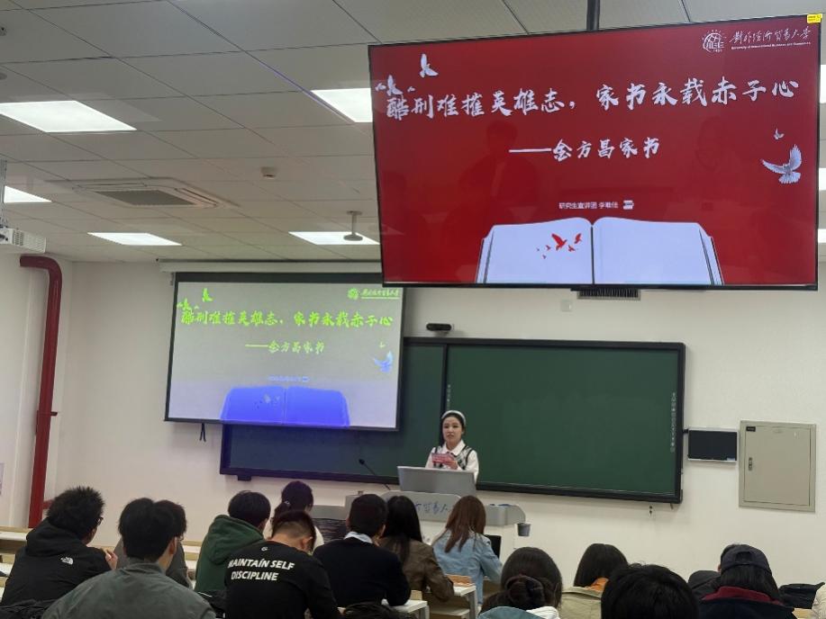 宣讲围绕抗战英雄的家书与事迹展开激励青年学子从中汲取精神力量,厚植爱党爱国情怀。宣讲过程中,国际经济贸易免费a片 杨砚成同学以《高唱动人旋律,矢志保卫祖国——冼星海家书》为题,展现了人民音乐家以音符为枪、用旋律鼓舞斗志的赤子之心;国际经济贸易免费a片 汪韫珂同学带来的《铭记先烈志,勇担家国情——李育才家书》,深情讲述了革命先辈为国为民、舍生忘死的家国担当;保险免费a片 李唯佳同学则通过《酷刑难摧英雄志,家书永载赤子心——金方昌家书》,生动再现了革命烈士坚贞不屈、视死如归的英雄气概。宣讲人声情并茂的诵读与深入浅出的讲解,使在场同学深受触动。