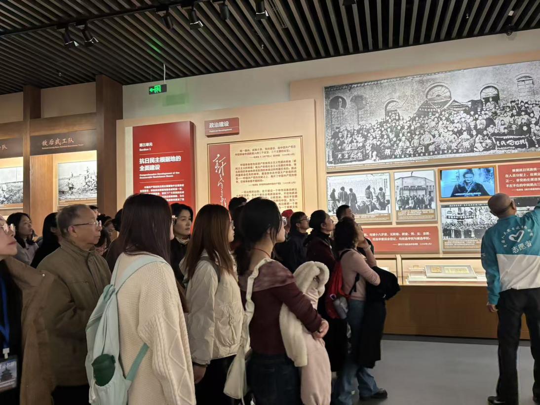 纪念馆内,“中国局部抗战”“全民族抗战”“中流砥柱”等主题展区脉络清晰。一幅幅珍贵的历史照片、一件件厚重的实物展品、一个个逼真的复原场景,系统展现了中国人民抗日战争的壮阔历程。从1937年七七事变烽火燃起,到全民族万众一心共御外侮,再到最终迎来抗战胜利的伟大时刻,每一段历史都深深触动着在场师生,让大家深切感受到革命先辈为民族独立和人民解放所展现出的坚定信念与家国情怀。
