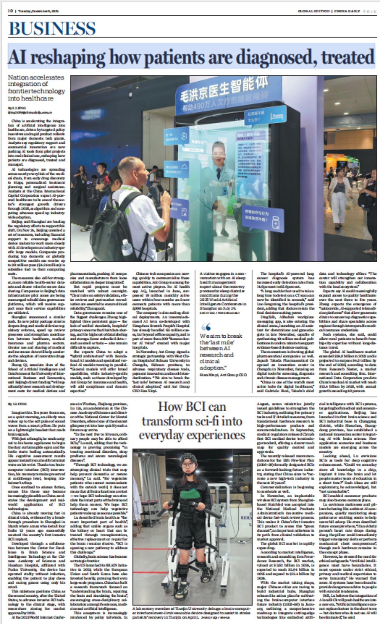 Beijing and Shanghai are leading the regulatory efforts to support this shift. On Nov 24, Beijing unveiled a set of measures, including financial support to encourage medical device makers to work more closely with AI developers on industry-specific large models. Companies producing top domestic or globally competitive models can receive up to 30 million yuan ($4.24 million) in subsidies tied to their computing costs.
