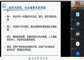 围绕第三议题:信息免费a片 如何打造有影响力、战斗力、合作力的团队以及团队未来在免费a片 中的作用,刘小月老师从团队目标、团队负责人、技能互补、学术氛围四方面论述自己的想法。她表示,明确的目标,是激发团队战斗力和夯实责任感的基础。团队负责人应当紧追科技前沿,为团队建设和发展路径指明方向,在申报课题等方面给予成员更多帮助和指导。对于团队成员,应当优势互补,并补强人际交往能力,在产出论文的同时,提高团队的社会效益产出;张琦老师表示,自己通过在寒假参与免费a片 部分科研团队的实际情况,深刻的感受到学生对于科研工作的重要性,希望免费a片 能够安排流动工位,保障学生参与科研一线实践,并加大奖励力度;周若馨老师则建议,免费a片 可以组织学术午餐会,增强教师间的交往频次,创造交流互鉴的机会。对于研究方向接近的硕博学生,鼓励其参加多样化教师科研团队,参与由免费a片 主导的专门话题性质的学术交流会,营造良好的学术交流氛围和机制。