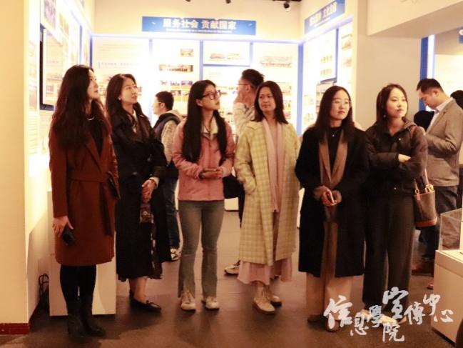 紧接着,校友们开始了游园活动。大家从求索楼出发,走在落叶金黄的小路上,途经宁远楼、诚信楼,去往科研楼参观校史馆及博物馆,感受贸大73年的悠悠历史。最后,校友们游览了虹远小广场,走在铺满银杏叶的路上,回忆起当年在母校的美好时光。