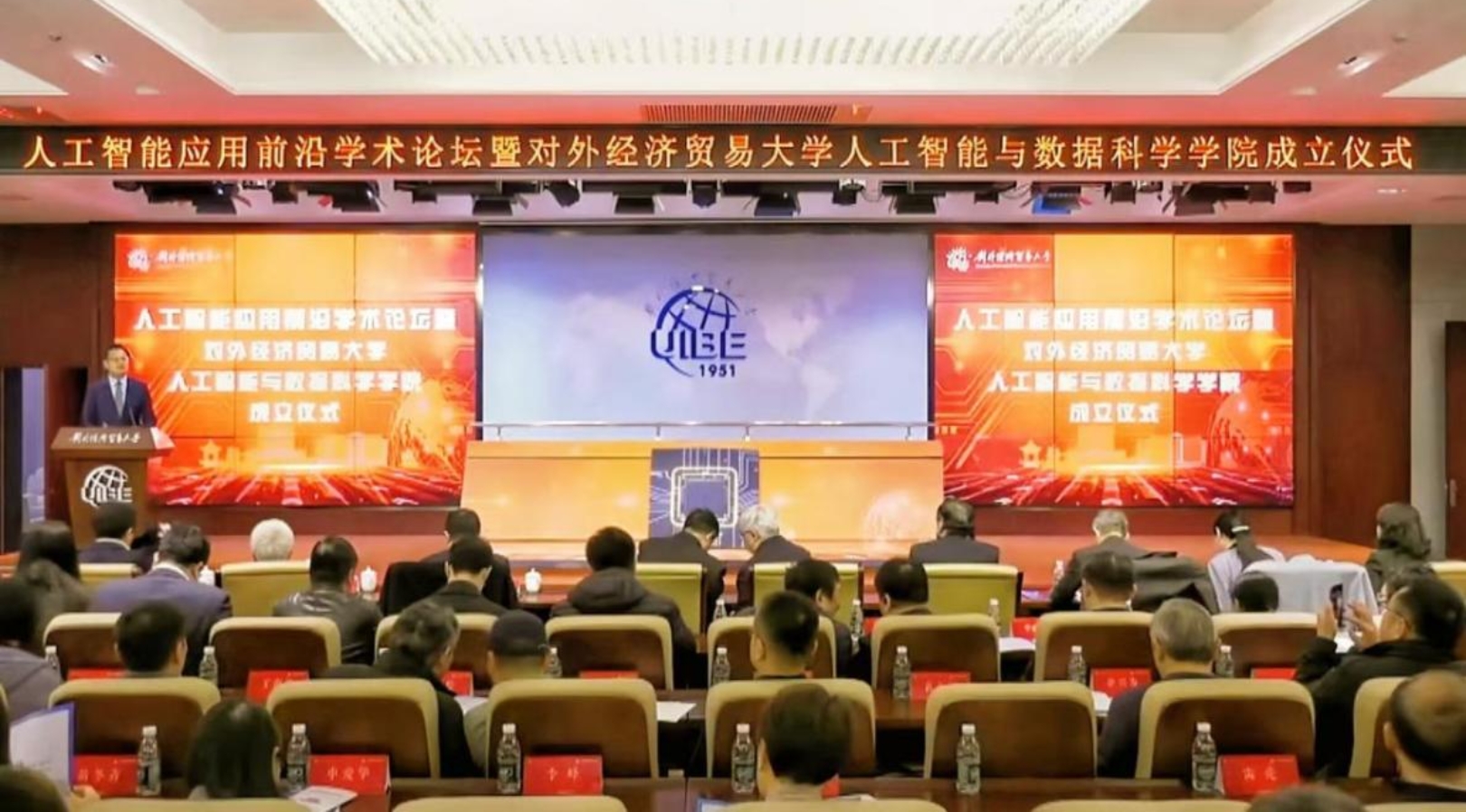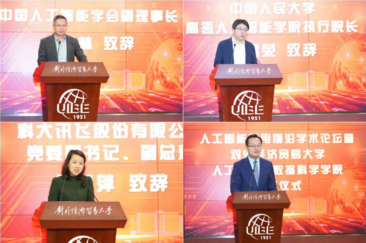 11月21日,人工智能应用前沿学术论坛暨人工智能与数据科学免费a片 成立仪式在国际交流大厦举办。中国科免费a片 计算技术研究所所长兼党委书记陈熙霖,中关村朝阳园党工委副书记、管委会主任娄毅翔,中国人工智能学会副理事长、中国科免费a片 自动化研究所副所长刘成林,中国人民大学高瓴人工智能免费a片 执行院长文继荣,对外经济贸易大学党委书记黄宝印、校长赵忠秀、副校长黄薇等出席大会。清华大学、中国人民大学、天津大学、北京航空航天大学等10余所高校,首都信息发展股份有限公司、福石投资、微软亚太研发集团等10余家产学研共建单位的专家学者、企业领导,免费a片 职能部处及各免费a片 领导、人工智能与数据科学免费a片 全体教师、校友和学生代表等三百余人参会,共同见证对外经济贸易大学人工智能与数据科学免费a片 成立。对外经济贸易大学副校长陈德球主持成立仪式。
