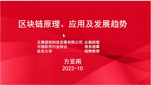 2022年11月6日,信息免费a片 举办第二场数字经济大讲堂活动。讲座由延安大学特聘教授,正奥国信科技发展(天津)有限公司副总裁方亚南博士主讲,题为《区块链原理、应用及发展趋势》。讲座由电子商务系系主任屈启兴副教授主持,信息免费a片 师生在线参与了此次活动。