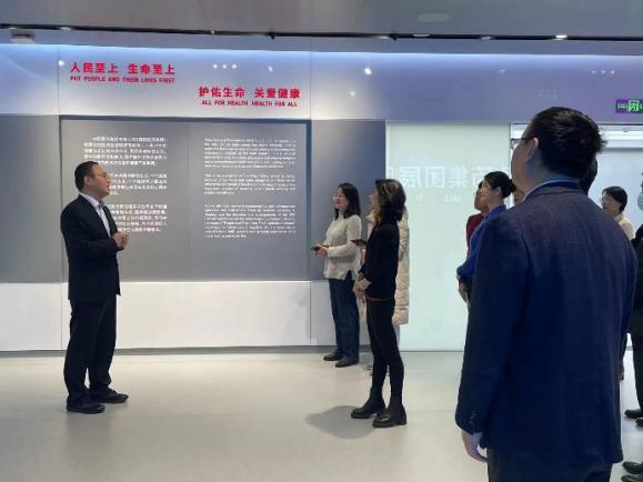 信管教师党支部首先参观了国药集团展厅,党委书记董事长周颂亲自讲解了中国医药集团有限公司的历史沿革,讲述了国药人历史上的感人故事,强调公司不忘“引领全国医药购销和生产,推动中国医药事业发展”的初心,彰显国企担当。在新冠疫情期间,通过援助和出口防疫物资助力为“一带一路”生命之路和健康之路所作的独特贡献,以及公司“十四五”期间大力实施的创新驱动型全生命周期、全产业链和全生态圈的发展战略规划,用实际行动实现中国式现代化的使命和责任,为教师党员上了一堂学习践行二十大精神的移动党课。