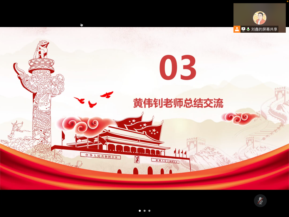 随后,黄震华老师也提出了三点体会:一是老师和同学们都应坚持初心使命,大学生思想要通,学好本领,为人民幸福、伟大复兴贡献力量;二是学好党史,学好21世纪马克思主义,学好习近平新时代中国特色社会主义思想;三是看到中国大国地位的塑造和提升,贡献中国方案、中国智慧。