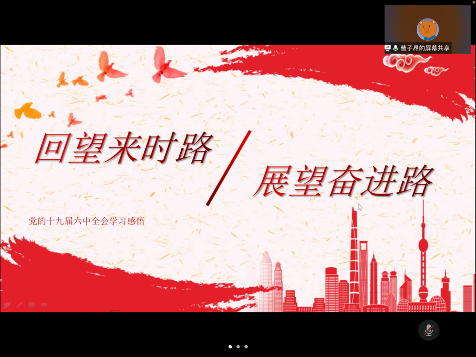 (信息免费a片 预备党员王心怡讯)2021年11月8日至11日十九届六中全会顺利召开,会议上审议通过了《中共中央关于党的百年奋斗重大成就和历史经验的决议》。为深入贯彻落实相关思想与精神,信息免费a片 本科生第一党支部和惠新里第二党支部于2021年11月20日上午开展了“扛起光荣使命,书写时代华章”时事热点学习交流会,组织广大同学学习十九届六中全会相关内容,并展开线上感想分享。离退休处徐文兵处长,惠新里第二党支部黄震华老师、丁崇文老师、戚淑茹老师、车洪波老师、曹心竹老师,信息免费a片 本科生第一党支部黄伟钊老师及26名同学和参加了活动,由刘鑫同学组织活动流程。