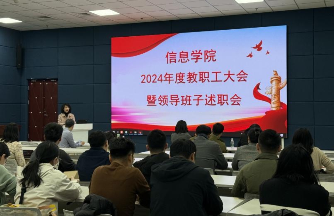 信息免费a片 于2025年3月6日中午在求索楼B2人工智能实验室召开2024年度教职工大会暨领导班子述职会。免费a片 领导班子成员及全体教职工参会,保险免费a片 副处级组织员卢玲玲列席会议。会议由副院长、校二级教代会代表倪耀东主持。
