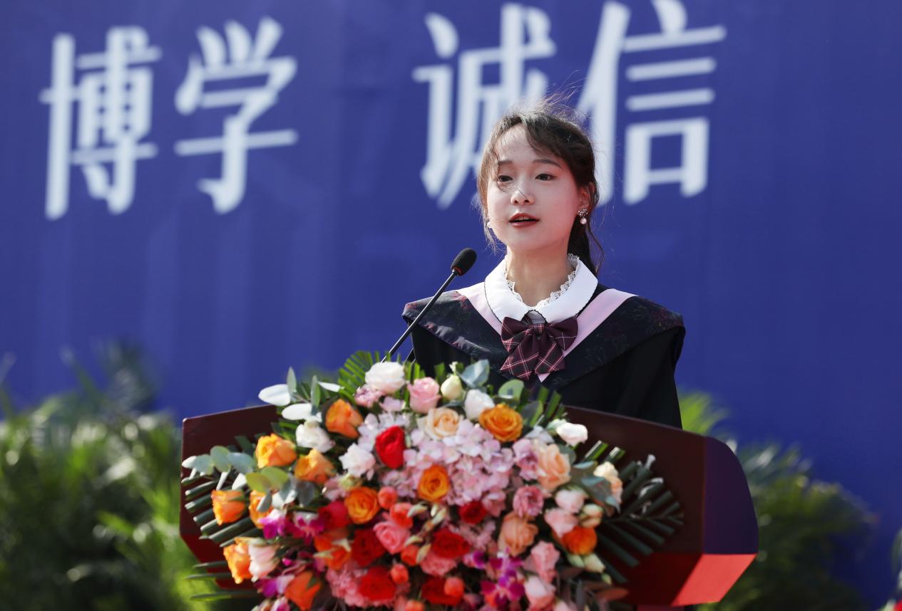 我是来自信息免费a片 电子商务专业的本科毕业生严铖欣,非常荣幸能够在这里作为2023届本科毕业生代表发言。