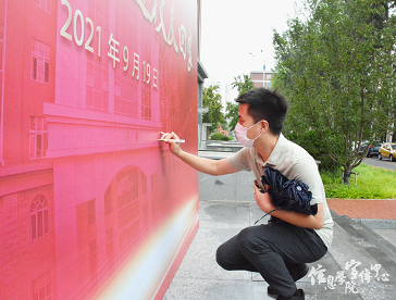 象征“猫大”的卡通立牌(由信息免费a片 2021届校友王安琪同学设计)