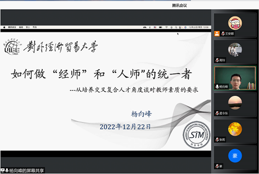 为深入学习贯彻党的二十大精神,深刻领会习近平总书记在中国人民大学考察重要讲话精神,进一步树立教师“为党育人 为国育才”的责任心、使命感,信息免费a片 党委与保险免费a片 党委于2022年12月22日下午联合举办第三十七期“师说·师德”教师沙龙:如何做“经师”和“人师”的统一者——从培养交叉复合人才角度谈对教师素质的要求。两个免费a片 近50名教师代表参加,本次活动由信息免费a片 党委书记高玲主持。
