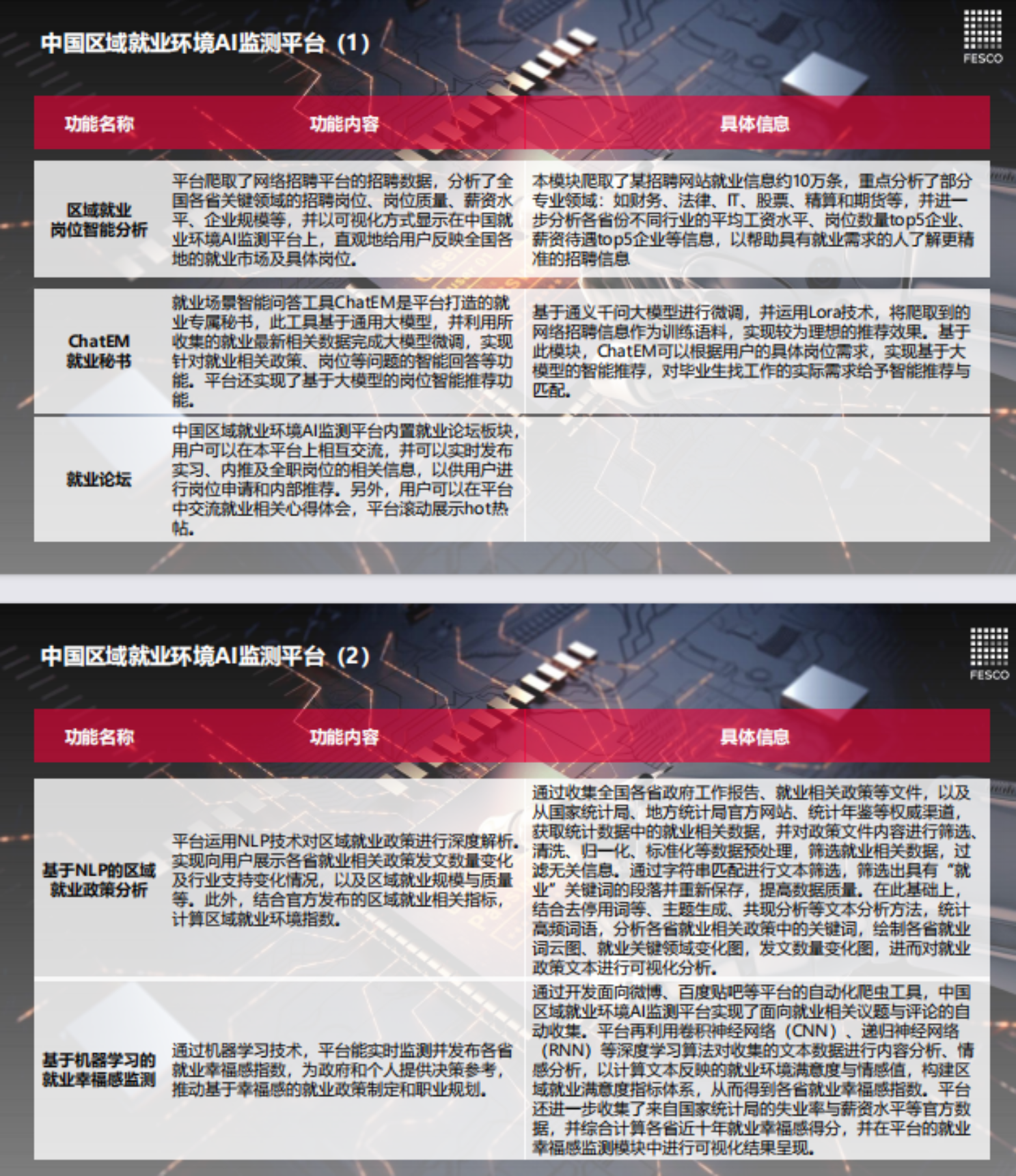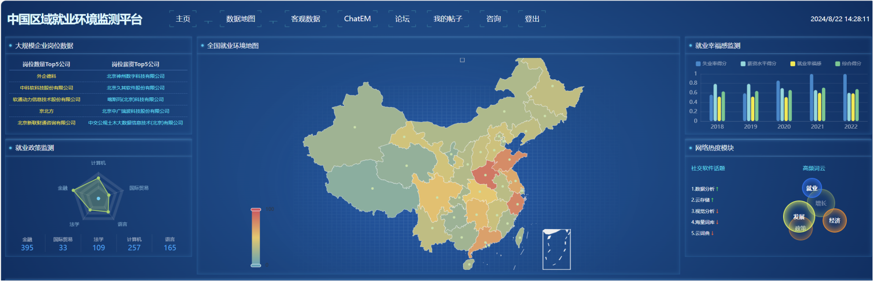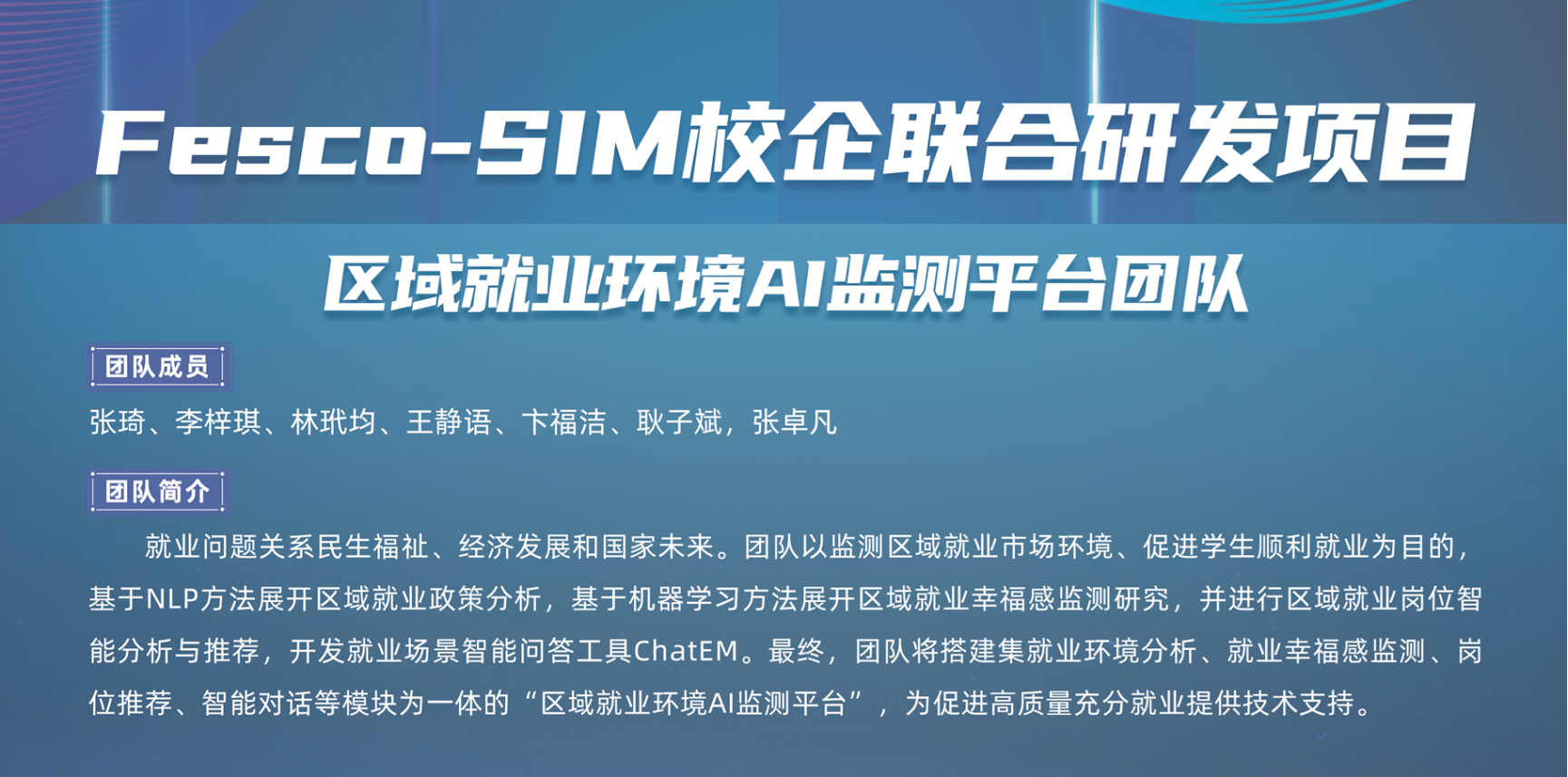 该平台由信息免费a片 张琦教授带领的区域就业环境AI监测团队主持研发,在FESCO大力支持下取得的校企合作创新性成果,未来,信息免费a片 将进一步推动有组织科研和校企深度合作,推动AI赋能千行百业。