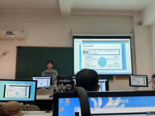 刘宁宁副教授带领的创新团队在讲座中分享了他们在AI技术赋能高等教育领域的研究成果。该团队通过整合大语言模型、多智能体技术及机器学习算法,开发了智能课堂、个性化学习推荐、智能评分及教学反馈分析系统。这些创新工具帮助教师精准识别学生需求,提升教学效果,同时也使学生能够获得更加个性化的学习体验。团队成员贺宇、王国龙、俞蔚捷、王一帆分别在技术开发、模型设计、系统架构和用户体验设计等方面通力协作,展现了人工智能与教学深度融合的前沿探索成果。