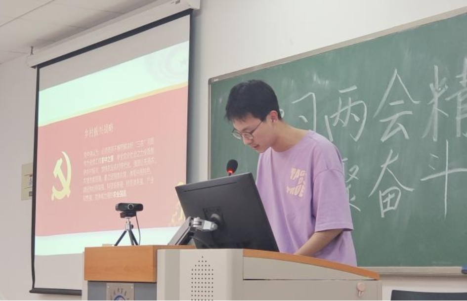活动伊始,五组同学分别就乡村振兴、正风反腐、教育人才、就业优先和医疗卫生五个主题进行分享。在乡村振兴主题下,第一组同学围绕都匀市茶旅振兴路和山西天镇李二口村两个例子展开,从身边的变化出发,展示党的带领下乡村展露出的新风貌新发展;围绕着正风反腐主题,第二组同学广泛结合时事热点,着力刻画了从严治党任务之艰巨,全党上下提高党性觉悟之必要,提出了二十大全面部署之下,坚决打赢反腐攻坚战的方向;对于教育人才主题,第三组同学从宏观层面入手,漫谈我国在教育科技人才领域着重发展的意义以及取得的成就和发展,为人才培养提出了完善师资队伍建设、促进学科专业部局和产学研深度结合等一系列切实可行的建议;第四组同学从就业话题的网络热度入手,围绕就业优先的议题,通过对就业环境机遇与挑战的分析,挖掘出我国当前存在就业结构性矛盾的现状,但同时我国当前经济发展前景较好,政府大力扶持就业,新兴职业不断涌现,就业形势稳中向好;在医疗卫生主题之下,第五组同学回顾了中国医疗卫生建设的发展历程,并对两会上的健康议题进行了深入探讨,提出深化医疗卫生体制改革、提升城乡人均医保标准是优化民生福祉的举措,也是人民群众的心之所向。