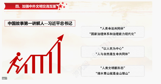 霍怡情同志在这一部分为大家分析讲述了坚定文化自信的原因。首先,她指出文化自信在“四个自信”中的基础作用。坚定中国特色社会主义道路自信、理论自信、制度自信,说到底是要坚定文化自信。文化自信是道路自信、理论自信和制度自信的基石,只有建立在文化自信的基础上,这三者才更加稳固。随后,她重点解说了文化自信的来源,无论是新民主主义革命时期还是新时代我们要进行的社会主义现代化建设,要想实现伟大中国梦,都离不开文化所激发的精神力量。 最后,霍怡情同志呼吁我们必须始终坚定文化自信,不断激发全民族文化创造活力,更好的构筑中国精神、中国价值和中国力量。