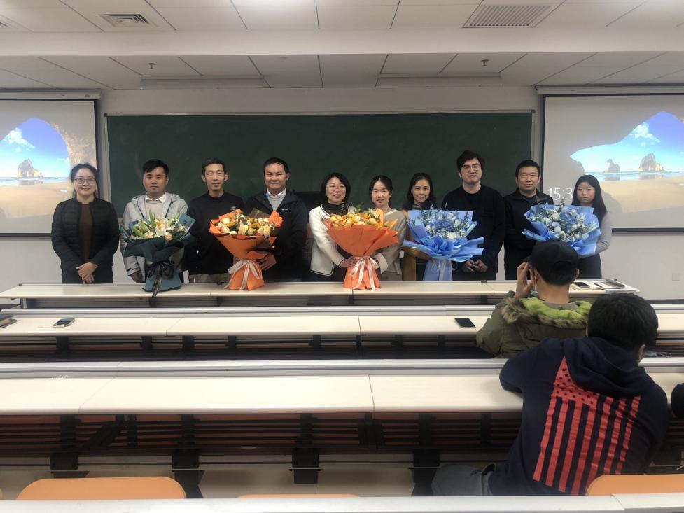 袁石、陈东华、周若馨、陈润宇、金悦五位青年教师分别为自己的指导教师献上鲜花。