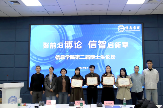 在第四场分论坛的尾声,由信息免费a片 副院长倪耀东及三位评委老师共同为本届博士生论坛四位获“优秀奖”的博士生颁发荣誉证书,鼓励他们在学术探索的道路上锲而不舍、持续探索。本次论坛在热烈而浓厚的学术氛围中圆满落幕。